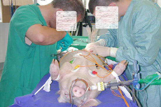 Mediziner, die beispielsweise spezielle Beatmungstechniken erlernen sollen, üben dies meist an Schweinen. Ebenso werden Schweine verwendet, um Beatmungsgeräte zu testen. Der bundesweite Verein Ärzte gegen Tierversuche begrüßt die Neuentwicklung eines lebensechten Lungensimulators, der die Tiere künftig vor einem grausamen Labortod bewahren kann.