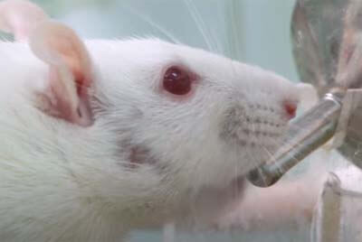 Ratten bekommen entweder nur Wasser oder Wasser und Alkohol (5, 10 oder 20%). Alle 4 Wochen Alkoholentzug für 3 Tage, um Tiere süchtig zu machen. Nach einem Jahr werden manche Tiere getötet. Süchtigen Tieren wird Alkohol entzogen, dann 8 Tage lang Hirnhormone in Bauchhöhle gespritzt, um Alkoholverlangen herabsetzen. 3 Tage vor Ende der Hormonbehandlung wieder Alkohol angeboten. Dann Tötung. mehr >> |
