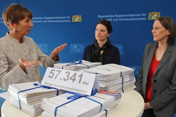 Übergabe von mehr als 57.00 Unterschriften gegen Xenotransplantations-Tierversuche.
