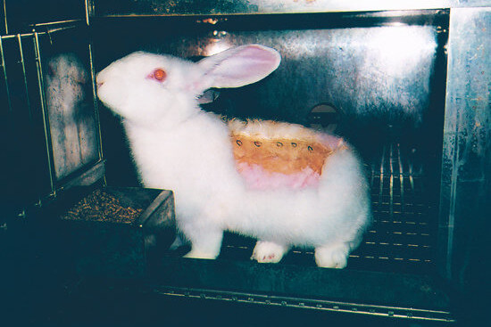 Tierversuch: Die Prüfsubstanz wird Kaninchen auf die geschorene Haut aufgetragen. Wirkt die Substanz hautreizend, entstehen schmerzhafte Entzündungen.